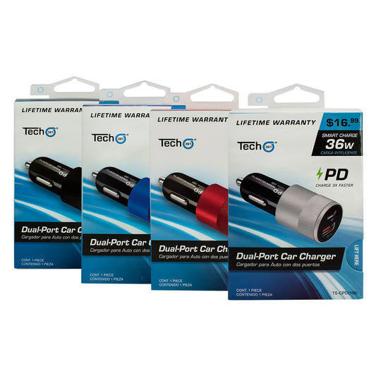 4 Port 3.1A USB and Type C Charge Cord Car Charger Set