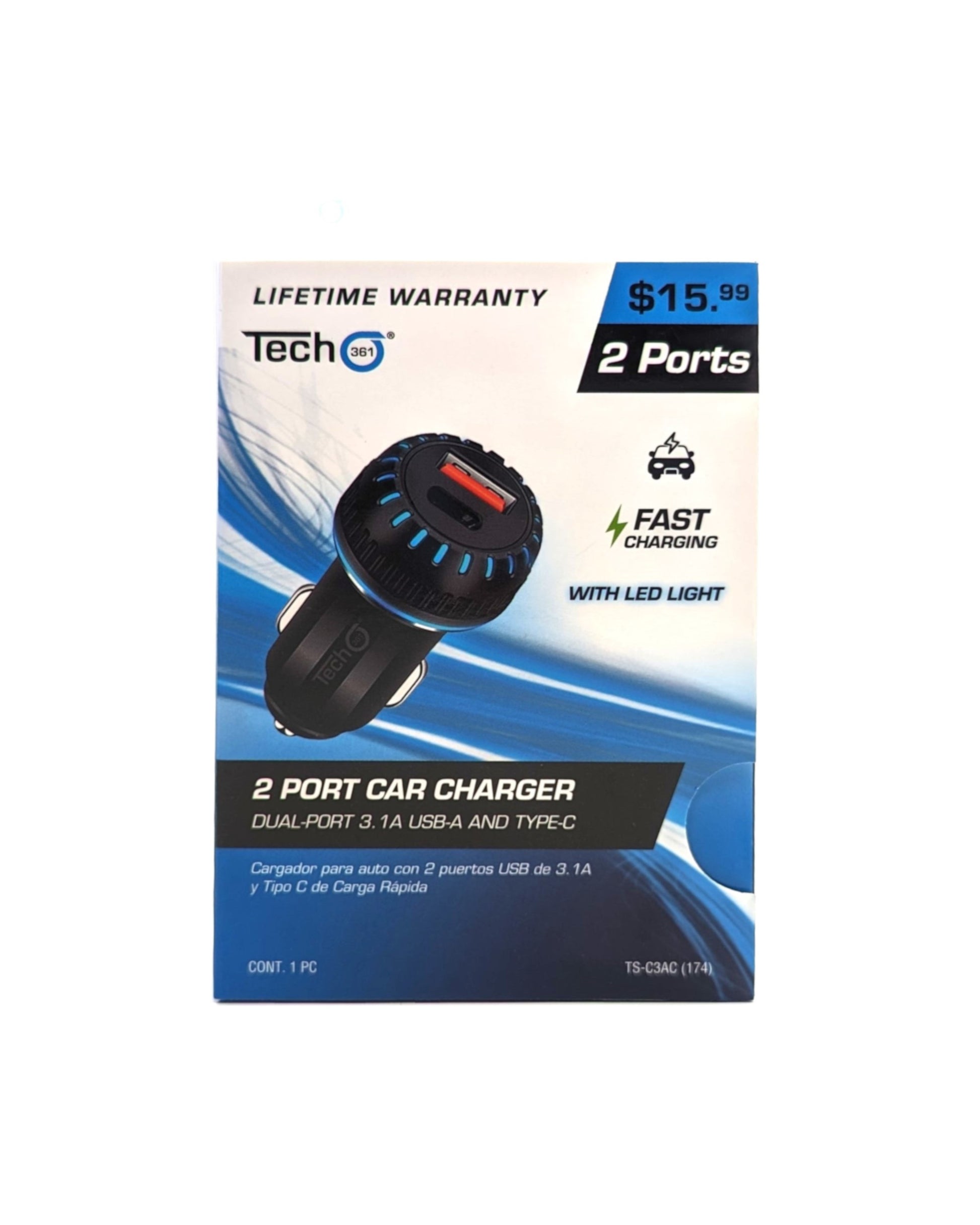 Designed to keep you connected on the go. Equipped with rapid charging capabilities and USB-C and USB-A ports, our 2 Port Car Charger is the perfect companion for your road trips and daily commutes.